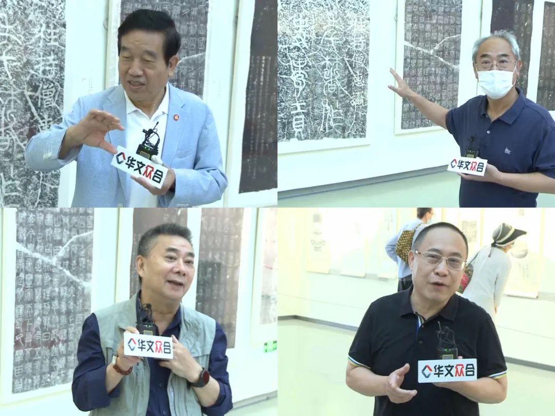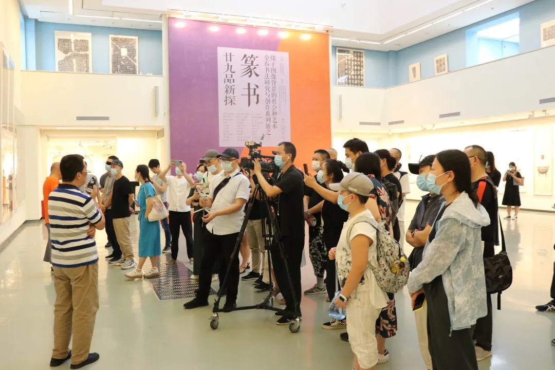 中國書法家協會原主席蘇士澍,《中國書法》社長兼主編、《中國書法報》社長兼總編朱培爾,中國書畫收藏家協會金石碑刻研究會主任李漢臣,鄭州大學書畫研究院副院長海萌輝等嘉賓蒞臨展廳,參加“名家談金石書法”的主題直播活動。
