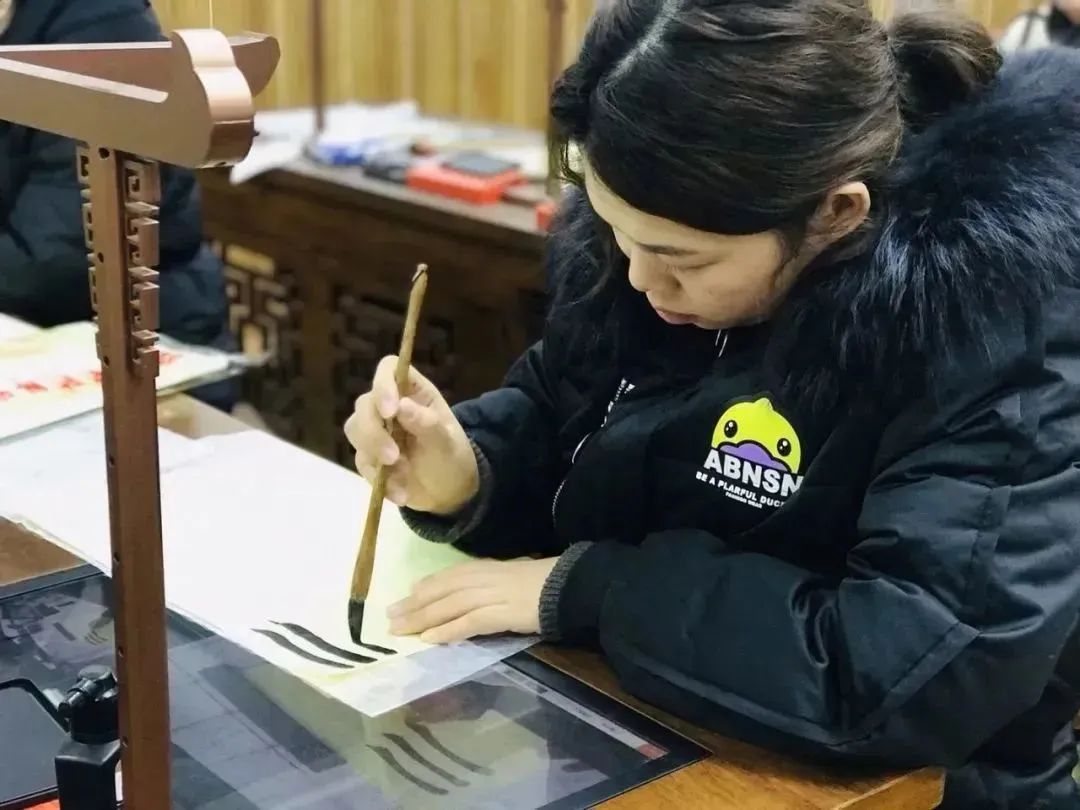 培訓后,教師們紛紛拿起毛筆練習,并使用書法資源庫進行自學。軍馬場學校將古色古香的傳統筆墨和現代科技數字化書寫相結合,賦能青年教師的綜合素養提升。