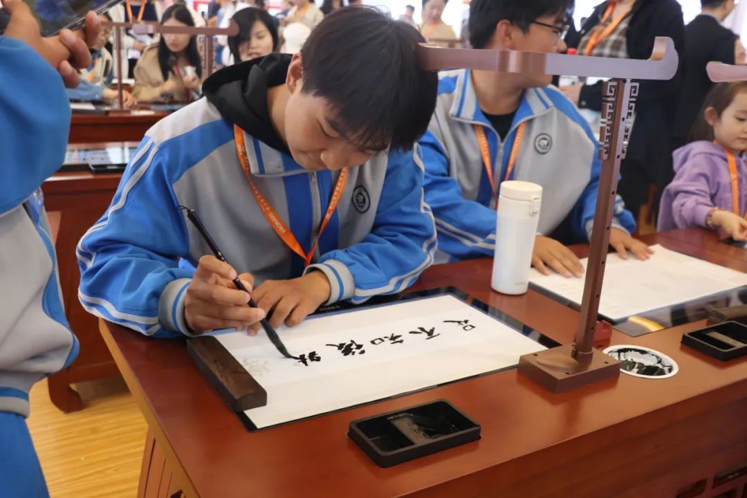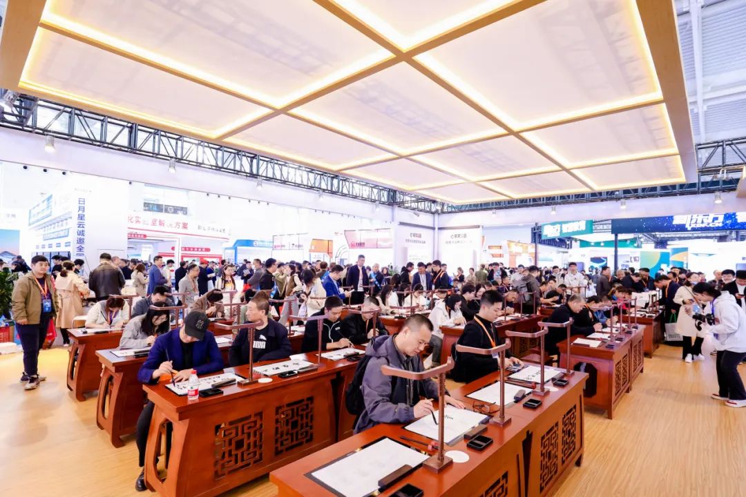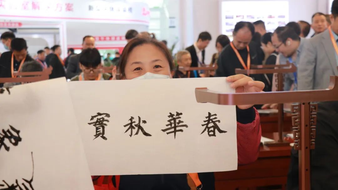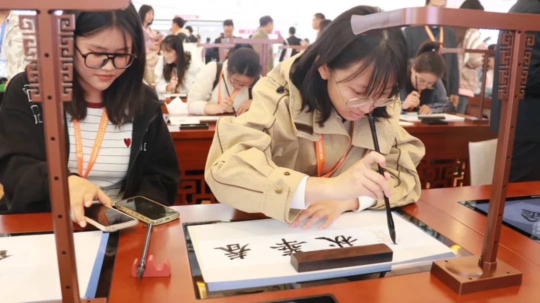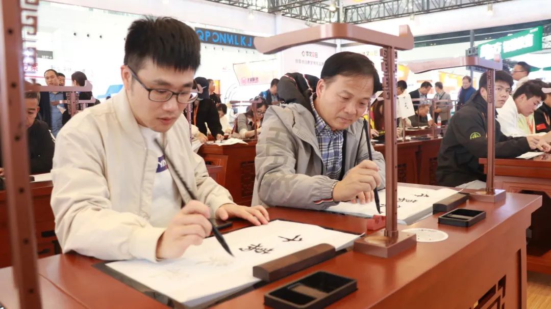 走進華文眾合展位,坐下寫上幾筆,仿佛寫毛筆字是刻在中國人骨子里的基因,書法藝術,是融入中國人骨子里的情愫。