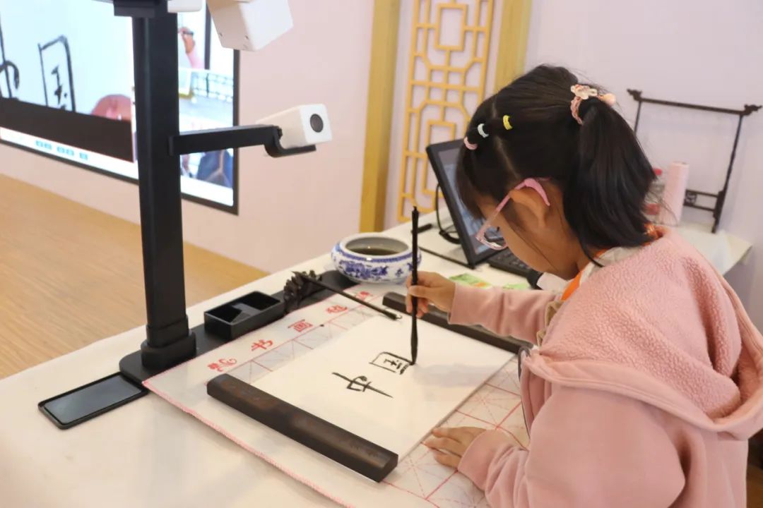小朋友們體驗智慧書法,傳統書法文化的種子在孩子們心中慢慢萌芽。