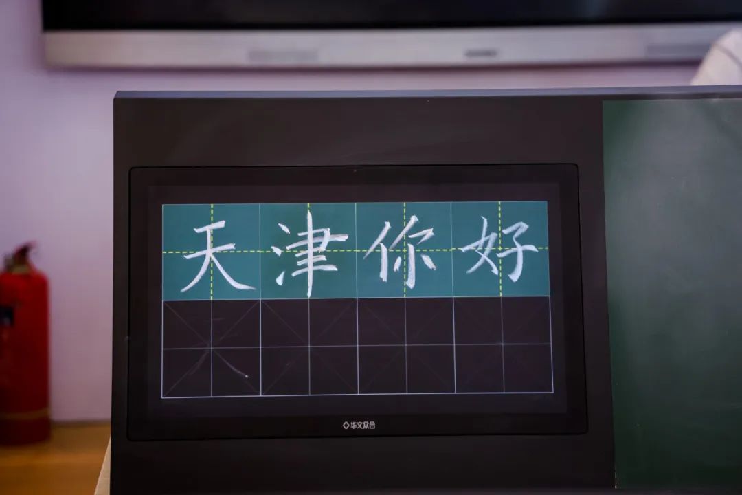 天津市東麗區職業教育中心學校的學生們在華文眾合第8代智慧書法教室中上了一堂科技感十足的書法課。