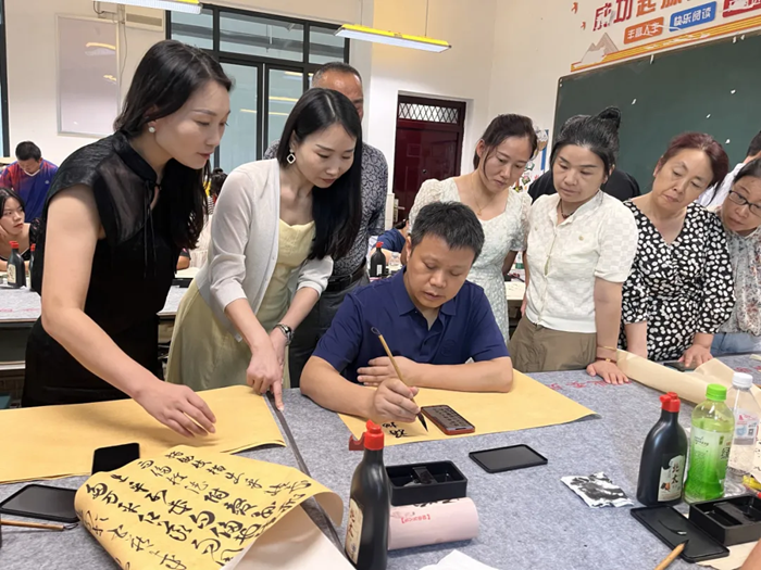 此外,本次培訓還特別邀請了吳永斌、楊勇、張宗壽、陳曉勇、孫延輝、張勝華、許啟虎、魯金洲、謝紅兵、唐從瓊、劉居上、丁力等著名書法家進行授課,他們通過觀摩課堂實錄、說課、點評等形式,與參訓教師分享了寶貴經驗和對書法教學的深刻見解。