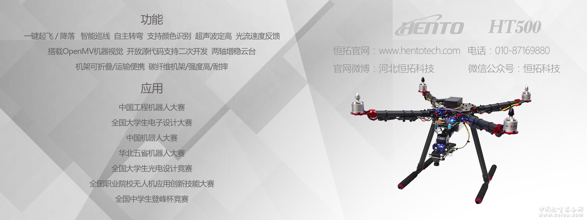 產品詳細介紹恒拓“HT500”系列空中機器人實驗開發平臺,采用基于STM32F4的恒拓系列飛行控制器,采用500mm軸距四旋翼結構,通過搭載的高分辨率攝像頭、光流測速傳感器以及超聲波測距傳感器可以獲得地面上的道路信息和高度信息,識別并跟蹤地面上的黑線軌道,目標識別并且追蹤。起飛、精準巡線、懸停、轉彎、精準降落全程均可自主完成,同時支持用戶手動遙控操作飛行,可完成飛行避障、目標物抓取與投擲、航拍等任務。 恒拓“HT500”采用Keil MDK開發環境和C語言編程,開放源代碼和通信協議,入門簡單,程序通俗易懂。用戶可在此基礎上進行二次開發,實現更多功能,可提供Windows、Android、iOS、Linux等多種平臺地面站軟件平臺,通過地面站可獲取當前無人機姿態、高度、位置等信息,并可設置起飛高度、巡航速度等參數,并支持無遙控器飛行。 |