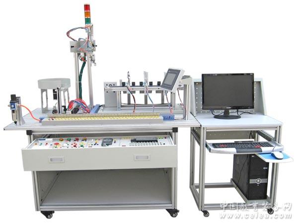 二、設備結構: 實訓裝置臺架為鋁合金導軌式,實訓考核裝置PLC模塊的I/O 端子、變頻器的接線端子、各常用模塊與PLC的連接端子,均與安全插座連接,使用帶安全插頭的導線進行電路連接;各指令開關、光電開關、傳感器和指示元件的電路,則通過端子排進行連接。插拔線連接電路與端子牌連接電路相結合 ,既保證學生基本技能的訓練、形成和鞏固,又保證電路連接的快速、安全和可靠。 鋁合金導軌式實訓臺:可以安裝送料機構、機械手、傳輸分揀機構。實訓模塊及PLC主機等可以放置在拉出式的支架上。 觸摸屏:MCGS7062,模塊材料要求:高強度塑料外殼、重量輕,面板是鐵質噴塑板。 PLC模塊及變頻器模塊:PLC 40點以上IO西門子CPU226;變頻器:MM420 0.37KW;模塊材料要求:高強度塑料外殼、重量輕,面板是鋁塑板,圖案、文字符號采用進口油墨絲印。 電源模塊:三相電源總開關(帶漏電和短路保護)1個,熔斷器3只,單相電源插座2個,安全插座5個; 按鈕模塊:24 V/6 A、12 V/2 A各一組;急停按鈕1只,轉換開關2只,蜂鳴器1只,復位按鈕黃、綠、紅各1只,自鎖按鈕黃、綠、紅各1只,24V指示燈黃、綠、紅各2只; 一體化接線排:接線排殼體上兩側相對設置有一初級接線區(接線端子)和一次級接線區(安全插座);接線端子與對應的安全插座通過導電彈性件連接;接線排殼體邊緣卷折,設有固定用的螺孔,可以固定在實訓桌上。 螺旋上料機構:工件庫1件,物料推出機構1件,接近開關1只,減速電機1只,主要完成將工件庫中的工件依次推出。 氣動機械手裝置:四自由度氣動機械手,氣缸及附屬傳感器選用SMC;氣動手臂兩側裝有2個限位擋板,擋板上裝有電感傳感器、緩沖閥,進行對手臂的旋轉限位。整個搬運機構能完成四個自由度動作,手臂伸縮、手臂旋轉、手爪上下、手爪松緊。氣缸及附屬傳感器選用SMC。 物料分揀裝置:傳送帶通過三相異步電動機驅動,在傳送帶端點處設計有落料口,通過光電傳感器檢測物料;傳送帶上裝有三個出料槽,對應位置有電感傳感器、光纖傳感器等,同時正對料槽位置裝有推料氣缸,共計三個氣缸。傳送帶采用可拆卸的鋁合金支架。氣缸及附屬傳感器選用SMC。 三、實訓項目: 1.氣動系統的安裝與調試 (1)氣動方向控制回路的安裝 (2)氣動速度控制回路的安裝 (3)氣動順序控制回路的安裝 (4)氣動機械手的安裝 (5)氣動系統氣路的連接 (6)磁性開關的位置調整 (7)氣動系統調試 (8)擺動控制回路的安裝 2.變頻器的安裝與調試 (1)變頻器與交流電機主電路的連接 (2)變頻器面板的參數設置與操作 (3)變頻器面板控制交流電機調速 (4)通過變頻器外部端子控制電機啟停 3.機電設備的安裝與調試 (1)傳動裝置同軸度的調整 (2)皮帶輸送機的安裝與調整 (3)搬運機械手設備安裝與調試 (4)物件分揀設備的安裝與調試 (5)送料設備的安裝與調試 (6)自動生產線設備安裝與調試 4.電氣控制電路的安裝與PLC編程 (1)電動機正反轉控制電路的連接與程序編寫 (2)電動機調速控制電路的連接與程序編寫 (3)皮帶輸送檢測程序編寫 (4)氣動順序動作控制程序編寫 (5)氣動機械手控制程序編寫 (6)機電一體化設備控制程序編寫 (7)自動生產線控制程序編寫 5.自動控制系統的安裝與調試 (1)多種傳感器的安裝與調試 (2)皮帶輸送檢測的自動控制 (3)機械手的自動控制 (4)機電一體化的自動控制 (5)PLC控制系統的安裝與調試 (6)自動生產線的安裝與調試 6.觸摸屏基本控制及設置 (1)觸摸屏的接線和基本參數設置; (2)基于觸摸屏控制方式的基本指令編程練習; (3)PLC、觸摸屏與變頻器通信控制。 7.可用于考核或技能競賽,可考察的職業能力 (1)機械構件的裝配與調整能力 (2)機電設備的安裝與調試能力 (3)電路安裝能力 (4)氣動系統的安裝與調試能力 (5)機電一體化設備的控制程序的編寫能力 (6)自動控制系統的安裝與調試能力 四、技術參數: 1. 交流電源:三相五線 AC 380V±10% 50 Hz; 2. 溫度:-10~40 ℃;環境濕度:≤90%(25℃); 3. 平臺外形尺寸:長×寬×高=1200×800×1500 mm; 4. 整機功耗:≤1.5 kW; 5. 安全保護措施:具有接地保護、漏電保護功能,安全性符合相關的國家標準。采用高絕緣的安全型插座及帶絕緣護套的高強度安全型實驗導線。