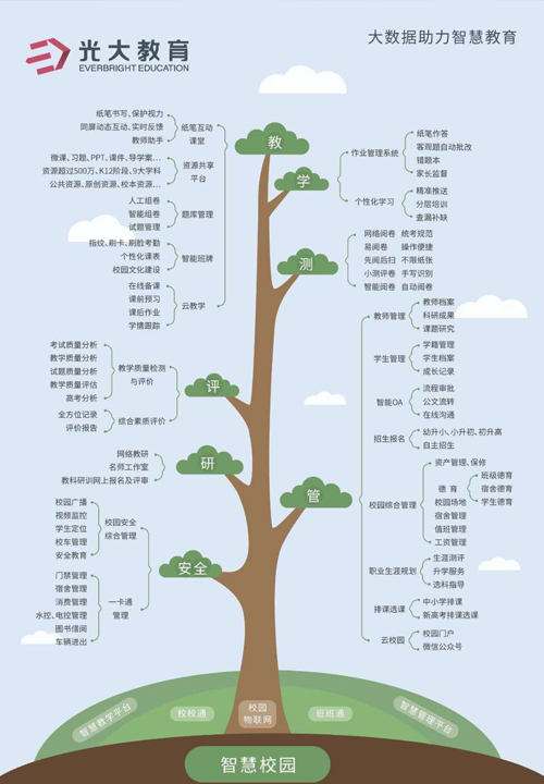 光大教育在教育行業砥礪前行十余年,研發的教育產品已經形成了完整的體系,服務于300多個教育局,5000多所學校,為上千萬學生提供優質的服務。