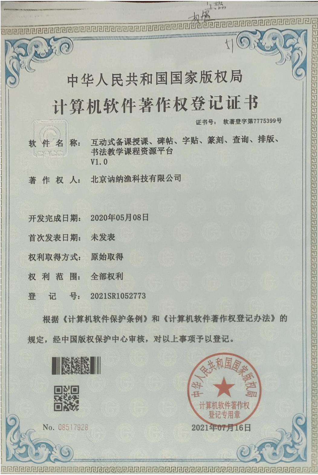 軟著:互動式備課授課、碑帖、字帖、篆刻、查詢、排版、書法教學課程資源平臺V1.0