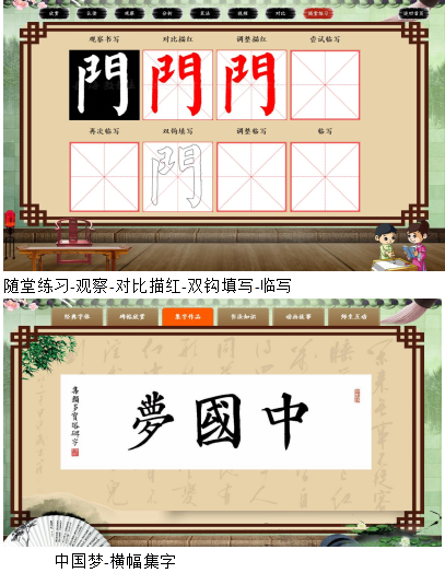 課堂批改講評,點名表揚展示,動靜結合;同步書法課跨越空間共建融融班級的學習氣氛。