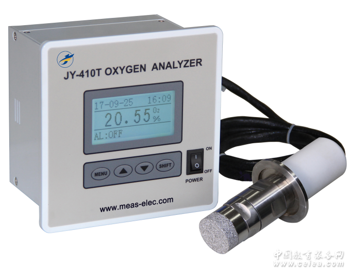 產(chǎn)品詳細介紹分體式雙氧化鋯微量氧分析儀JY-410T 技術(shù)參數(shù): 測量原理:雙氧化鋯 顯示方式:128×64 點陣LCD 測量范圍:0 ~ 10/100/1000ppm / 1.00% / 25.00% O2 測量精度:0~1000ppm / 1.00% / 25.00% ≤±1% FS 0~100ppm ≤±2% FS 0~10ppm ≤±5%FS 分 辨 率:0.1ppm 重 復 性:≤±1% 響應時間:T90<30S 模擬輸出: 4~20mA.DC(非隔離輸出,負載電阻小于500歐姆) 0-10V輸出(非隔離輸出,負載電阻大于10K歐姆) 1路可編程干觸點型無源報警輸出,觸點最大容量220VAC/2A 通訊接口:RS232(默認)或RS485 環(huán)境溫度:-10 ~ +50℃ 環(huán)境濕度:<80%RH 樣氣溫度:0 ~ 200℃(采樣管路為不銹鋼管的情況下) 采樣方式:插入式(擴散式) 樣氣壓力:86-106kPa,穩(wěn)壓氣氛 樣氣組份:無可燃性氣體,無腐蝕性氣體,灰塵量小于1mg/Nm3 規(guī)格尺寸:儀表:155mm×155mm×118mm(H×W×D) 開孔尺寸:儀表:135mm×135mm(H×W) 工作電源:交流AC170 ~265V 50/60Hz、功耗小于10VA 使用壽命:>36月(正常使用條件下) 安裝方式:儀表嵌入式安裝、探頭插入式安裝(KF40) 儀器特點: 中英文菜單自由切換功能,操作直觀方便; 采用大屏幕點陣液晶顯示,可同時顯示氧量、日期、時間等參數(shù); 采用進口雙氧化鋯氧傳感器,具有測量準確度高、校準間隔周期長、響應速度快、零點漂移量小等特點; 量程內(nèi)任意一點校準即可,無須多點校準即可滿足整個量程的測量精度; 恢復出廠設(shè)置功能,防止因誤操作導致分析儀參數(shù)設(shè)置混亂; 數(shù)據(jù)自動存儲功能,可供客戶自由查閱歷史數(shù)據(jù); 上下限報警點能在全量程范圍內(nèi)任意設(shè)置; 標準RS232(默認)或RS485通訊接口,可與計算機實現(xiàn)雙向通訊(可選)。 訂貨須知(用戶訂貨時請注明) 儀器測量范圍 被測氣體壓力:正壓、微壓或負壓 背景氣體只能是N2或惰性氣體