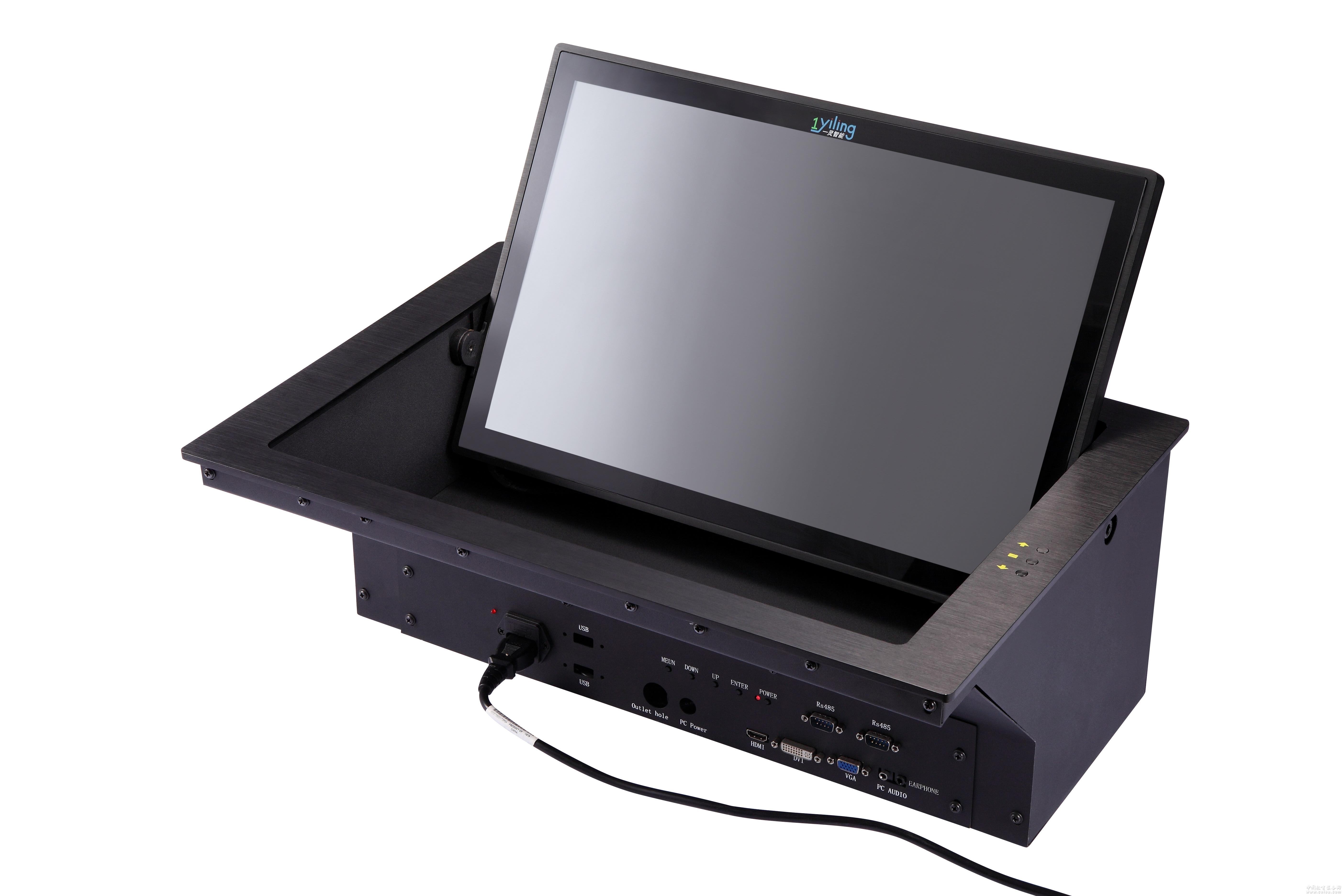 產品詳細介紹產品簡介: F2電動系列液晶屏翻轉器是針對多功能會議系統,無紙化會議系統,辦公系統,智能家居而設計的桌面美化設備。也可作為智能化多功能一體機概念應用,產品采用高靜音電機同步轉軸翻轉原理。產品性能穩定,操作簡單,使用方便,當打開翻轉器時液晶屏自動翻轉到預設的角度,并且可以在翻轉角度范圍內自由定位,以滿足不同的視覺需求。顯示屏采用下沉設計技術,便于工作或會議時人與人之間的視線交流。關閉時,顯示器自動翻轉隱藏于桌面內部且可自動斷開液晶屏的電源,并與桌面平整一致,起到保護液晶屏以及防盜、防塵、美化桌面功能,同時產品還支持無線連接控制,具有自由編組,可根據需要單獨、群組或全部同步翻轉使用,現已涉及使用場所包括政府、部隊、司法、教育、金融、交通、企事業單位、智能家居、酒店會議等智能化應用。