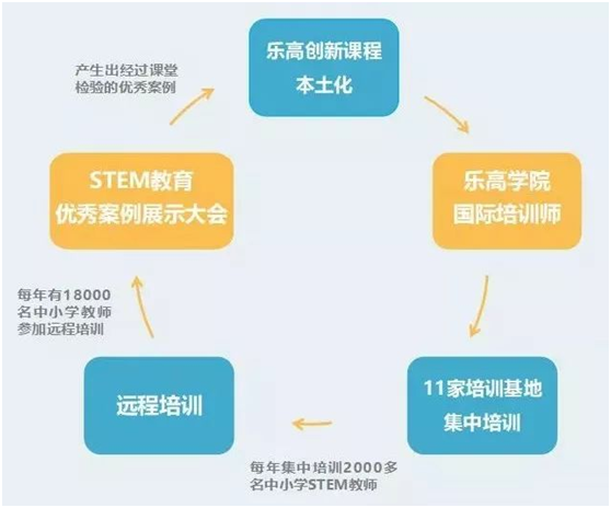 在教育部的指導(dǎo)下,樂高集團(tuán)按照“全國中小學(xué)教師信息技術(shù)應(yīng)用能力提升工程”的要求,建設(shè)了具有樂高特色的遠(yuǎn)程培訓(xùn)平臺和教師培訓(xùn)基地。在高品質(zhì)的創(chuàng)新教育培訓(xùn)內(nèi)容和模式下,截至2017年底全國已經(jīng)有超過6萬名中小學(xué)校長和教師合格完成樂高專題培訓(xùn)。