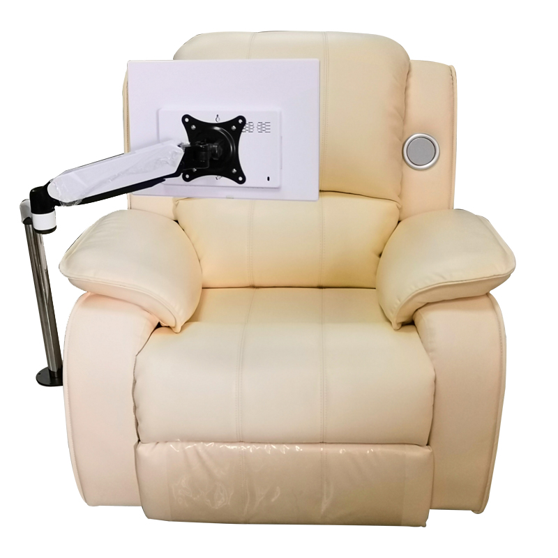 產(chǎn)品詳細介紹1、頭等艙設(shè)計開發(fā)的進口牛皮座椅1臺 a.產(chǎn)品尺寸:長105CM×寬90CM×高100CM(椅背收起) 長160CM×寬105CM×高80CM(椅背展開) b.產(chǎn)品重量: 凈重:55KG;包裝重量65KG最大承載量:100KG, c. 電 源: 220V(50Hz) d.獨立電動控制系統(tǒng):音樂椅靠背、腿部電動控制設(shè)計,靠背100度-180度,腿部90度-180度任意調(diào)節(jié)。 e.播音系統(tǒng):內(nèi)置專業(yè)級 別藍牙音樂播放器,一個低音喇叭兩個高音喇叭,支持無線藍牙連接播放音樂,支持優(yōu)盤sd卡外置播放音樂,支持12V1A對外供電。 2、數(shù)字播放系統(tǒng):15寸觸控播放器 1個:無線遙控器,支持音樂、心理圖片、心理文章、心理電影等多種格式文件(內(nèi)置心理視聽資料含心理音樂:放松類、激揚類、冥想類、腦波共振類、抒發(fā)類、振奮類、中醫(yī)五行類、自我催眠類等類別,心理圖片:放松圖、錯覺圖,心理視頻:催眠用搖擺鐘視頻、放松訓(xùn)練教學視頻、經(jīng)典眩暈視頻;太空遐想視頻,心理電影:3部,心理小常識:txt文字版38篇) 3、音樂治療指導(dǎo)書籍 1本 4、萬向顯示器支架 1個(支持方位調(diào)節(jié),便于使用者調(diào)節(jié)顯示器角度調(diào)整到適合自己的位置放置 |