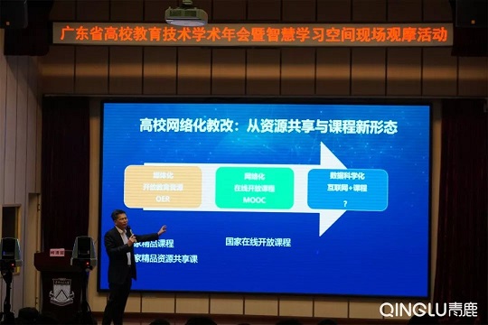 會議邀請了著名的教育信息化專家做專題報告,現場多所廣東高校圍繞高校智慧教室、智慧學習空間的建設與應用,通過現場課堂教學觀摩、專題論壇等進行互動交流。