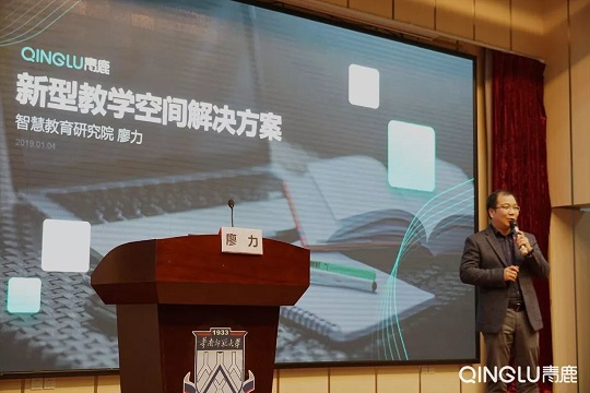 廣州青鹿教育科技有限公司智慧教育研究院院長廖力作了主題為《青鹿教育高校智慧教室解決方案》的演講