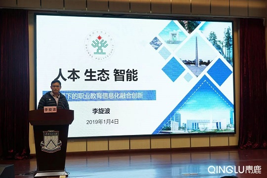 順德職業技術學院信息管理中心副主任李旋波作了主題為《2.0背景下的職業教育信息化融合創新》的演講