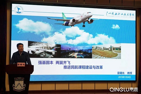 廣州民航職業技術學院教務處副處長雷曙光教授作了主題為《強基固本 兩翼齊飛,推進民航課堂建設與改革》的演講