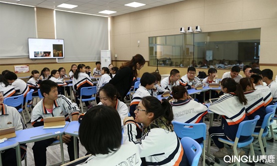 現在的學生,其實思維是很窄的,尤其是文科的同學更容易有這樣一個問題。所以學校有這樣一個條件,能把學生的興趣激發起來還是很好的。如果在常規的教室里上這樣一節學科融合課,我要做資料準備,要組織學生討論,至少需要用到2-3個課時。但是在(青鹿智慧課堂)這樣一個環境中一節課就可以展示完,而且效果會更好。