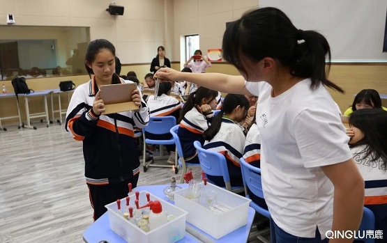 示范課取得的課堂效果,得到了老師們的認可。一些老師更是迫不及待地將在培訓中獲得的新教學思路進行實踐。其中一位化學老師,在學生的配合下,將整個實驗的過程同步到學生的電腦上,解決了化學實驗課長期存在的圍觀式教學的難題。