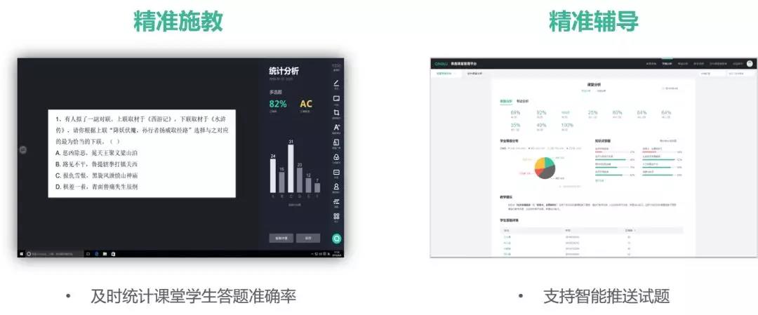青鹿空中智慧課堂可實現兩端學生答題率及時統計、反饋,讓主講老師準確快速掌握學生學情情況,值得一提的是系統還會根據學生錯題記錄,推送同樣知識點的試題,查缺補漏,做到精準施教,精準輔導。
