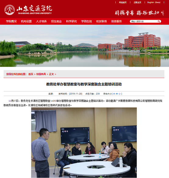 青鹿助力山東交通學院舉辦智慧教室與教學深度融合主題培訓