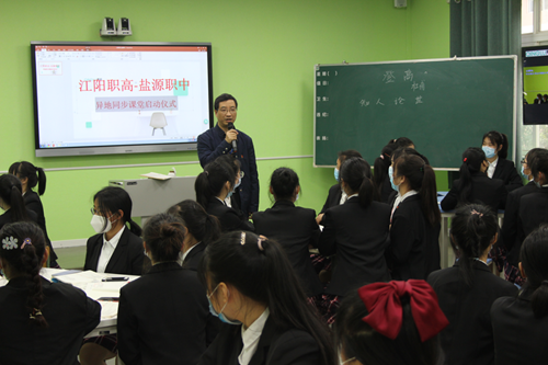 江陽職高校長林波宣布異地同步課堂正式啟動