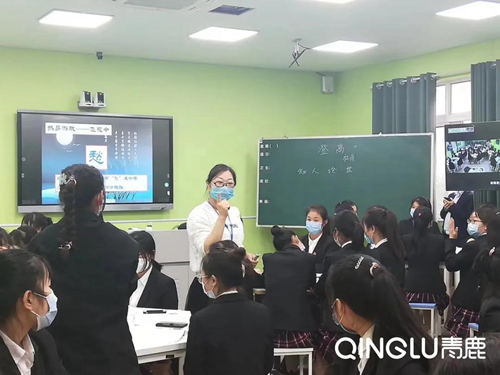 領導致辭結束后,江陽職高的宋老師與兩校的同學們應用青鹿多點互動智慧教室,上了新學期第一節(jié)異地同步語文課。與傳統(tǒng)的遠程直播課不同,這節(jié)遠程語文課能讓遠在700公里之外的鹽源職中的同學們充分參與到課堂的互動當中。