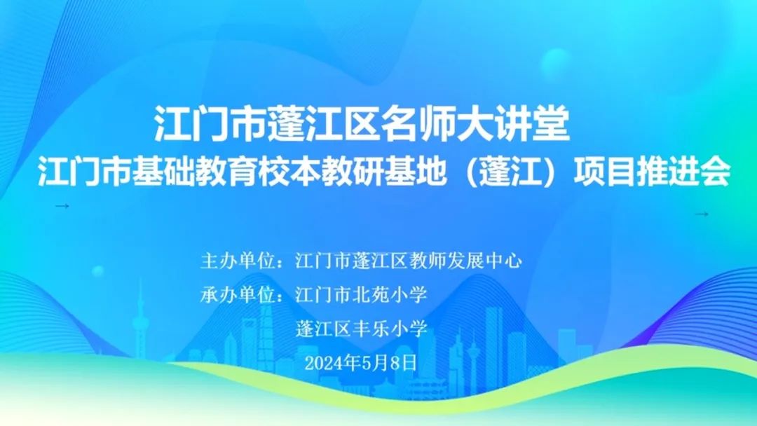 5月8日上午,江門市蓬江區名師大講堂暨江門市基礎教育校本教研基地(蓬江)項目建設推進會在江門市北苑小學召開,線上直播同步進行。本次活動由江門市蓬江區教師發展中心主辦,江門市北苑小學和蓬江區豐樂小學承辦。