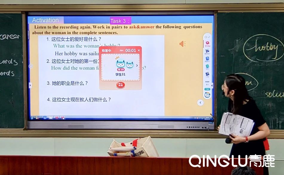 與此同時,老師借助智慧紙筆系統的互動功能,充分發揮了學生的主體地位,分別以課堂搶答、隨機選人、全班作答、對比講評等互動教學形式,有效激發學生的學習熱情,提高教學效率。