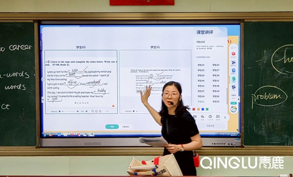學生使用青鹿智能筆,在印有點陣碼的智能本上書寫作答,答題數據將實時傳輸至教學系統,系統即時對答題結果進行智能批改,老師能更高效、有針對性地進行習題講解,做到“當堂問題當堂解答”。