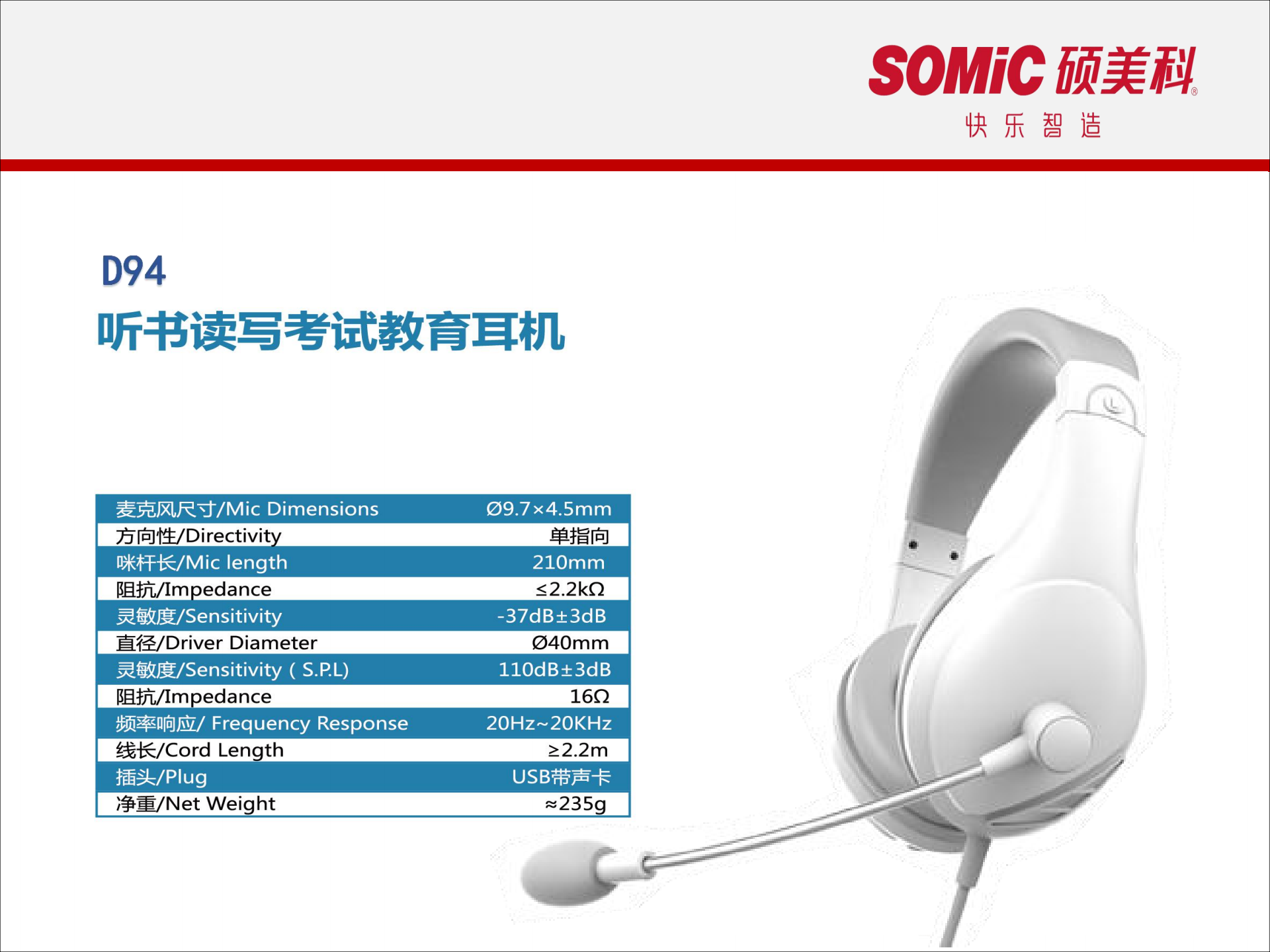產品詳細介紹碩美科D97環境降噪教育考試耳機 1.ENC環境降噪技術,抑制環境噪聲拾音更清晰。 2.聽說訓練和考試中,徹底解決噪聲影響。 3.高效屏蔽麥克風,抗干擾,拾音清晰。 4.旋轉式鵝形管長咪桿,柔軟性強,可自由彎曲,旋轉調控。 5.綠色咪頭錄音標識,錄音/通話暢通無阻。 6.高性能驅動單元,音質干凈清澈。 7.可拆換大面積耳罩,完善被動隔音降噪。 8.USB免驅動帶聲卡插頭。