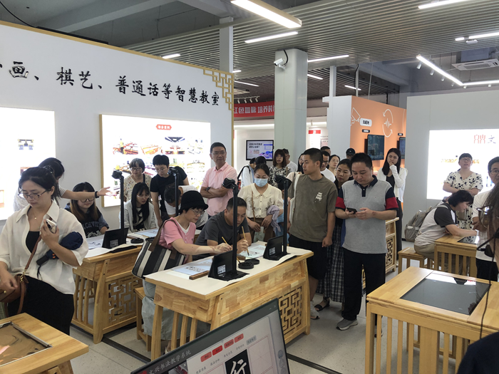 2025年7月14日,浙江省臺州市三門技師學院教師代表團蒞臨文興小書家參觀交流,實地考察智慧書法、美術、棋藝及沙畫教室等創新教育產品。雙方就數字化美育解決方案的應用前景展開深度探討,共同探索“科技+藝術”融合育人的新模式。