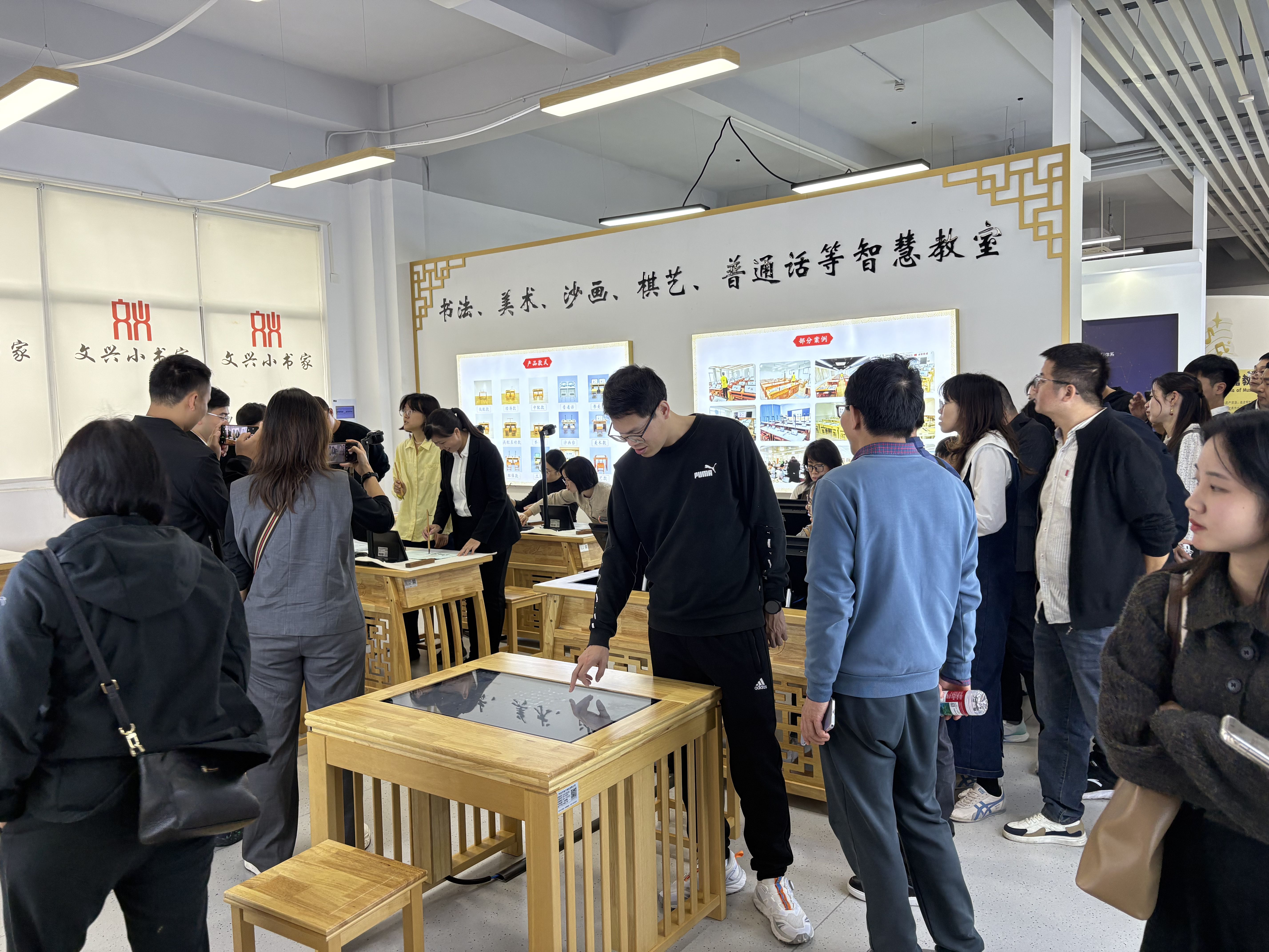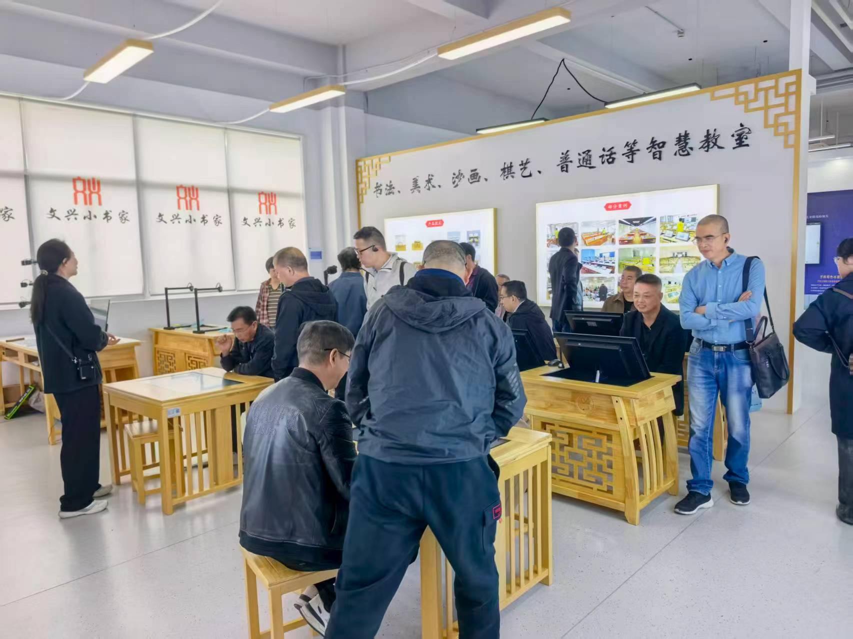 在參觀過程中,文興小書家展示了包括智慧書法教室、智慧美術教室、數字棋藝室以及沙畫創新教室在內的多樣化文化教育解決方案。這些產品通過融合尖端科技與傳統藝術,不僅激發了學生的創造力,也為教師提供了高效的教學工具。