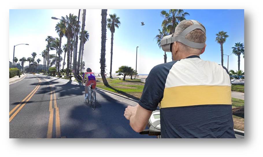 VR運(yùn)動(dòng)訓(xùn)練系統(tǒng)利用虛擬現(xiàn)實(shí)技術(shù)創(chuàng)造出智能化的三維運(yùn)動(dòng)環(huán)境,并且可鏈接多種運(yùn)動(dòng)器械包括動(dòng)感單車(chē)、跑步機(jī)、劃船機(jī)、滑雪機(jī)等,提供安全的擬真運(yùn)動(dòng)情景,融入積極交互活動(dòng),有效帶動(dòng)用戶(hù)的積極性,從而促進(jìn)身心健康。