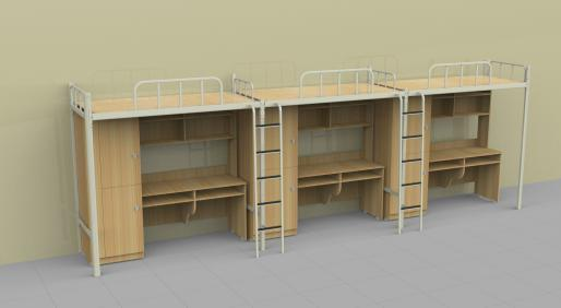 產品詳細介紹一、規格尺寸 1、單邊(三人位)尺寸 5840*900*2085mm 二、鐵件部分材質說明: 1、床立柱:兩端采用 61*61mm 的Q195 材質六邊形棱型管,立柱上下端加裝工程塑料防護套件, 保證架體與地面接觸無聲,防止學生擦掛。 2、床橫梁:采用 32*72*1.2mm 的 Q195 材質(P 型管)型材,冷軋鋼板采用一次性滾壓成型,增 4 六人間 (三人 位爬梯 式)連 體公寓床 加承受能力,整體牢固美觀。 3、護欄:采用 25*25*1.2mm 方管鑲 1.0mm 油壓成型鋼板; 4、床板梁:采用 6 根/位 25*25*1.2mm 方管,增強承重能力。 5、爬梯:采用 Q235 材質 25*25*1.2mm 方管,加裝防滑塑膠踏板,防止打滑踏空。 6、床板:采用 12mmE1 級環保多層板。 7、鏈接方式:采用 25*195*2mm“H”型卡扣式連接(無螺絲連接,整體全隱裝) 8、表面處理:鋼件焊接采用二氧化碳保護焊,金屬表面經過打磨、脫脂、酸洗、水洗、中和、 表 調、磷化、烘干,再采用杜邦塑粉靜電噴塑處理、高溫固化等工序。 三、木質家具材料說明 1、衣柜:采用上下兩層設計,突出最大儲物空間,衣柜上層內配置(直徑 19mm)不銹鋼掛衣 桿,基材采用 18mm 厚度的 E1 級環保板材制作;五金件:采用優質五金配件;柜門鎖:采用明鎖 暗掛,底部加裝 9mm 高靜音,防潮腳墊; 2、學習桌:基材采用 18mm 厚 E1 級環保板材,封邊:截面處采用優質 1.2mm 厚封邊條,桌面: 采用 25mm 厚E1 級環保板材,甲醛釋放量達到國家 E1 級環保標準,底部安裝 9mm 高的靜音防滑 防潮腳墊; 四、床體布局 1.床位長度采用錯開式布局,上下鋪床位長度 2 米,單上鋪長度 1.92 米,適用于房間尺寸有 限的情況下滿足不同身高的學生需求。 |