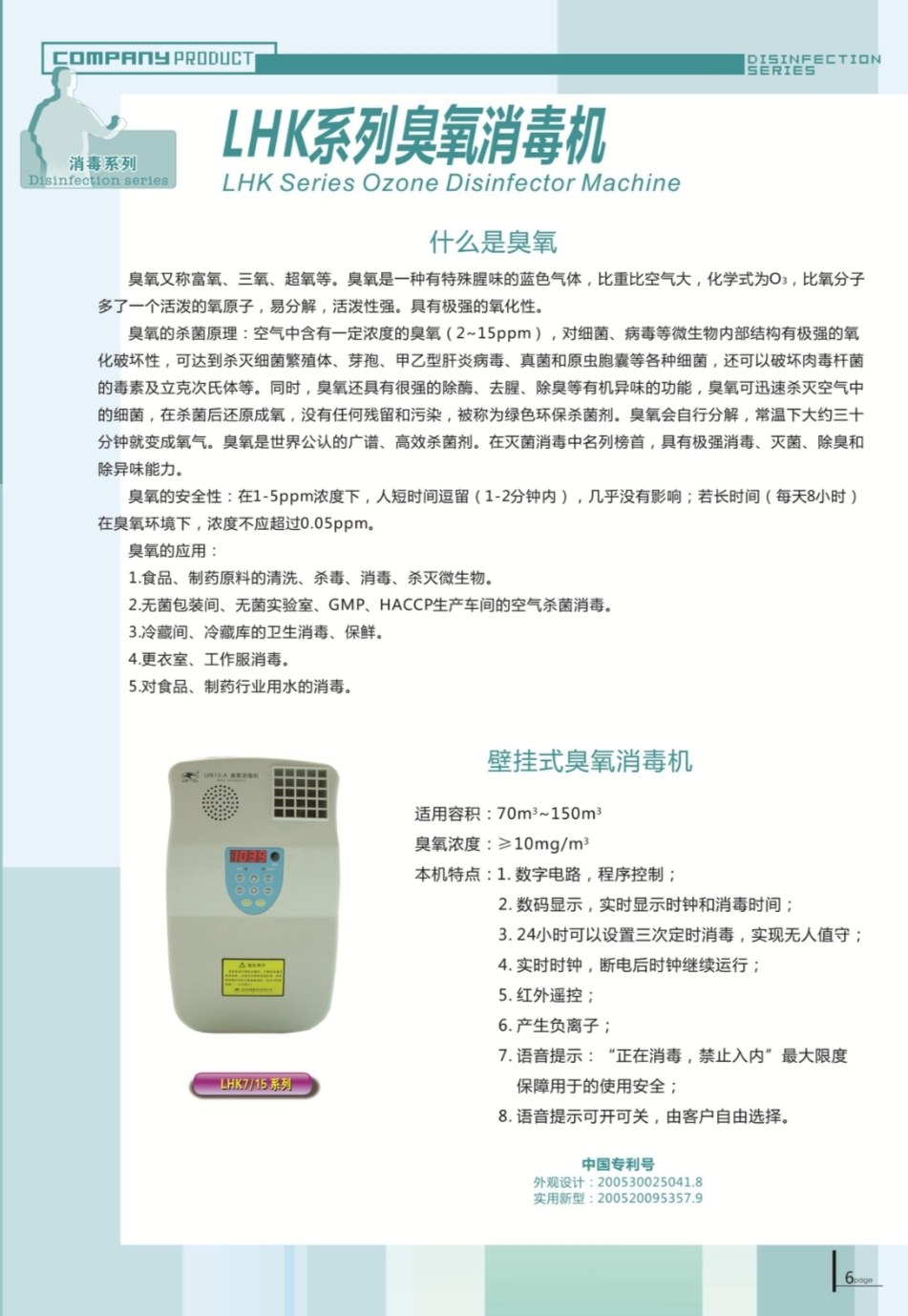 產品詳細介紹 臭氧的殺菌原理:空氣中含有一定濃度的臭氧(2∽15ppm),對細菌、病毒等微生物內部結構有極強的氧化破壞性,可達到殺滅細菌繁殖體、芽孢、甲乙型肝炎病毒、真菌和原蟲胞囊等各種細菌,還可以破壞肉毒桿菌的毒素及立克次氏體等。同時,臭氧還具有很強的除酶、去腥、除臭等有機異味的功能,臭氧可迅速殺滅空氣中的細菌,在殺菌后還原成氧,沒有任何殘留和污染,被稱為綠色環保殺菌劑。臭氧會自行分解,常溫下大約三十分鐘就變成氧氣。臭氧是世界公認的廣譜、高效殺滅菌劑。在滅菌消毒中名列榜首,具有極強消毒、滅菌、除臭和除異味的能力。 臭氧的安全性:在1-5ppm濃度下,人短時間逗留(1-2分鐘內),幾乎沒有影響;若長時間(每天8小時)在臭氧環境下,濃度不應超過0.05ppm。 臭氧的應用: 1.食品、制藥原料的清洗、殺毒、消毒、殺滅微生物。 2.無菌包裝間、無菌實驗室、GMP、HACCP生產車間的空氣殺菌消毒。 3.冷藏間、冷藏庫的衛生消毒、保鮮。 4.更衣室、工作服消毒。 5.對食品、制藥行業用水的消毒。