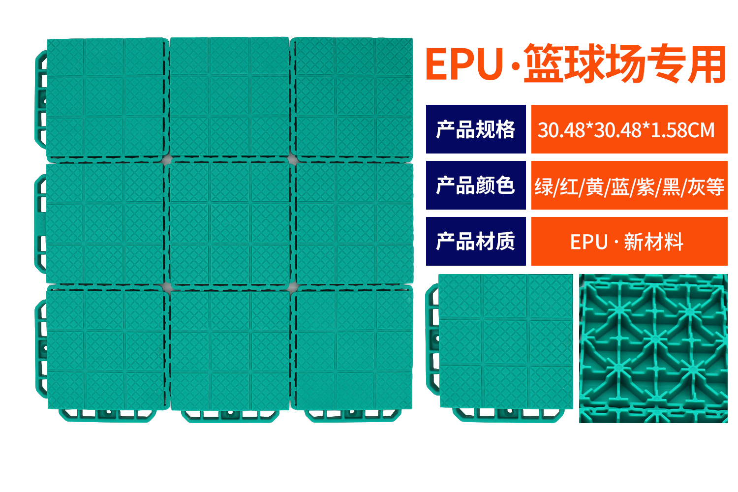 產品詳細介紹EPU 地板,為朵拉咪新型橡膠材料彈性拼裝地板。地板材質為自主研發的新型硫化橡膠材料,整體結構充分體現了橡膠材料的超級彈性,顛覆傳統硬質 PP 拼裝地板材質硬、腳感差、摔倒硬著地受傷、摔倒擦傷、遇汗水打滑、遇雨水影響打球的所有痛點。通體橡膠材料,超環保、超舒適、超減震、超防滑、超耐候、超安全,“質造”極致性能,為使用者提供絕佳的運動體驗與安全防護。 EPU 軟膠格子紋 產品規格:30.48cm*30.48cm*1.58cm 產品顏色:紅色、草綠、綠色、藍色、黃色和天藍色 產品材料:復合高分子熱塑性彈性體材料 產品克重:480 克 適用場地:全民健身及高端中小學運動場地產品分級:專業比賽級 產品質保:3 年