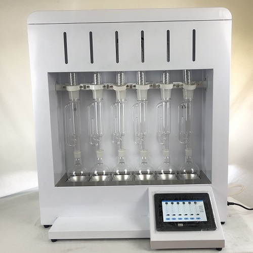 主要特點(diǎn): 1、加熱抽提,溶劑回收和冷卻三大部分組成; 2、索氏提取器的操作時(shí)可以根據(jù)試劑沸點(diǎn)和環(huán)境溫度不同而調(diào)節(jié)加熱溫度; 3、試樣在抽提過(guò)程反復(fù)浸泡及抽提,從而達(dá)到快速提取目的; 4、可自動(dòng)回收溶劑,大大方便了用戶(hù)的使用,并節(jié)約了很多時(shí)間; 5、索氏提取器抽提時(shí)間可調(diào)。 干式加熱型索氏提取儀器,又稱(chēng)脂肪抽取器或脂肪抽出器。索氏提取器是由提取瓶、提取管、冷凝器三部分組成的,提取管兩側(cè)分別有虹吸管和連接管,各部分連接處要嚴(yán)密不能漏氣。提取時(shí),將待測(cè)樣品包在脫脂濾紙包內(nèi),放入提取管內(nèi)。提取瓶?jī)?nèi)加入試劑,加熱提取瓶,試劑氣化,由連接管上升進(jìn)入冷凝器,凝成液體滴入提取管內(nèi),浸提樣品中的脂類(lèi)物質(zhì)。待提取管內(nèi)試劑液面達(dá)到一定高度,溶有粗脂肪的試劑經(jīng)虹吸管流入提取瓶。流入提取瓶?jī)?nèi)的試劑繼續(xù)被加熱氣化、上升、冷凝,滴入提取管內(nèi),如此循環(huán)往復(fù),直到抽提完全為止。 技術(shù)參數(shù): 1、產(chǎn)品型號(hào):LY-SXT-6G 2、每批提取樣品數(shù):6個(gè) 3、索氏提取器提取瓶容積:250ml/個(gè); 4、提取樣品量:0-5g/個(gè); 5、控溫范圍:室溫+5℃~100℃ 6、電源電壓:220V±10V頻率50Hz; 7、電加熱功率:800W; 8、外型尺寸: 750*230*775 mm; 9、重量:26kg 應(yīng)用領(lǐng)域: 水產(chǎn)品飼料中油脂含量測(cè)定、皮革中油脂含量測(cè)定、半夏中琥珀酸含量測(cè)定、靈芝中多糖含量測(cè)定、化學(xué)纖維中殘留油劑含量測(cè)定、香菇中脂肪含量測(cè)定等 |