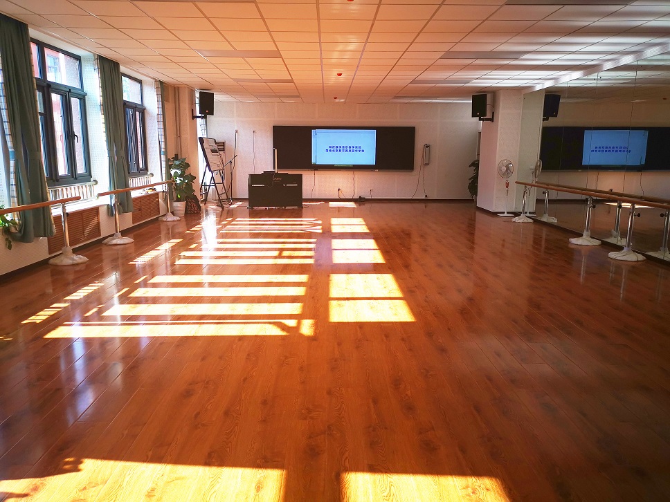 西府冠華學校音樂教室使用和慶音樂配備的云音樂教室教學系統軟件、機柜、數字音頻控制器、合唱臺、舞蹈把桿、舞蹈墊、舞蹈凳、音樂凳、練功球、瑜伽墊、拉力帶、壓腿磚等常用器材。