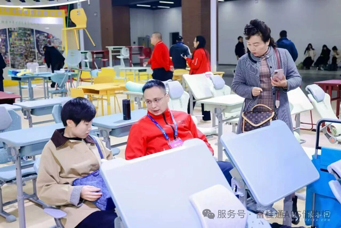 產(chǎn)品區(qū)中,多款課桌椅充滿設(shè)計感,并以人體工學設(shè)計保障學習舒適度與安全性;午休課桌椅則憑借硬核實力脫穎而出 —— 作為江蘇省午休課桌椅地方標準起草單位,其產(chǎn)品嚴格符合國標,江蘇省標雙重標準,更以靈活折疊設(shè)計實現(xiàn) “課用 - 午休” 轉(zhuǎn)換,節(jié)省空間適配校園需求。現(xiàn)場教育工作者駐足體驗,對產(chǎn)品的專業(yè)標準與實用價值高度認可。