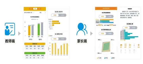 教師端,依據(jù)時間線和空間線兩個基準(zhǔn),全面顯示學(xué)校班級及個人的學(xué)業(yè)發(fā)展?fàn)顟B(tài),將數(shù)據(jù)精確到單個題目,將呈現(xiàn)成績概況、三率對比、分段分布、題型得分情況、客觀題選擇率、知識點丟分情況等信息,方便老師準(zhǔn)確捕捉教學(xué)重難點、因材施教。
