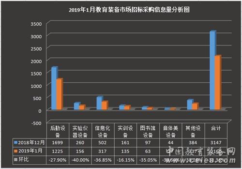 2019年首月教育裝備市場招標(biāo)采購信息量整體下降明顯
