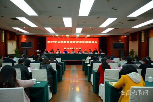 3月15日下午,池州市召開教育體育改革發(fā)展推進會,重在分析研判當前教育體育改革發(fā)展形勢,動員和鼓舞全市教育體育工作者統(tǒng)一思想提士氣,鼓足干勁再出發(fā),以鍥而不舍釘釘子的精神,奮力推進全市教育體育工作實現(xiàn)新跨越。池州市副市長賈瑄出席會議并講話。市政府副秘書長王正武主持會議。市委教體工委書記、市教體局局長胡學慧對2018年教育體育工作作以基本評價,并就全力做好2019年教育體育改革發(fā)展明確時間表、指明路線圖。朱文斌、許雪梅、計長生、江建華、姚惟耕、殷勇、包熙彪等在家委局領導參加會議。
