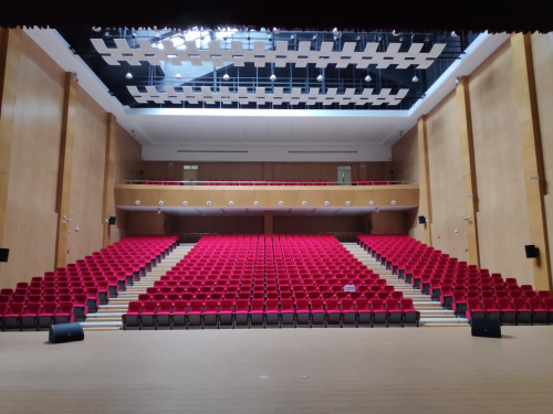 此外,itc還為許昌中學1000平的大禮堂建設了專業擴聲系統, 根據大禮堂的面積以及使用需求,參考國家廳堂擴聲設計標準一級進行設計,主要由聲源、音頻處理設備、功放及揚聲器系統組成。設計中所選的揚聲器是根據觀眾區的具體位置和面積,組成“點”聲源陣列,有效降低陣列的梳狀濾波效應,因此特選用恒指向揚聲器,有利于語言清晰度的提高,保證觀眾區都處于揚聲器的覆蓋范圍內。