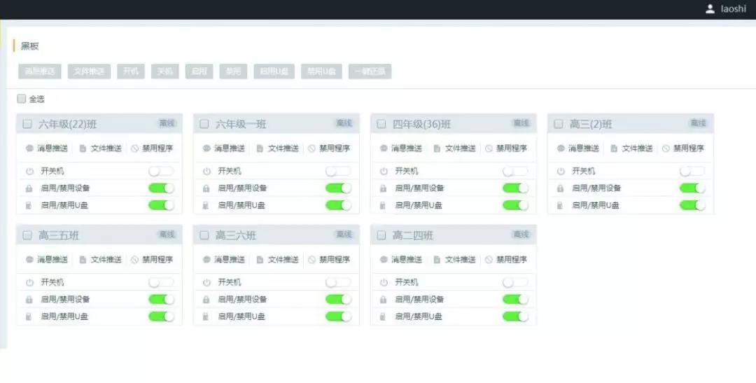 發送課程表、在客戶端設置是否按照課程表時間開關屏幕、定時關機、消息推送等一系列功能都可以在控制端進行操作,無需面對面下達指令,通過歐帝校園集中控制系統便可輕松完成。