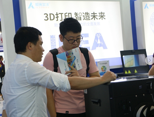 展會現場中,有不少老客戶前往展會同我們探討技術。其中有一位就是某知名汽車廠商。下圖為極光爾沃的老用戶用Z-603S 3D打印機打印的汽車發動機,也在展會中進行展示。通過同陳工的交流中,陳工談到3D打印機這項技術非常好,能夠打印汽車里面的零部件給學生學習,很直觀的能夠讓學生明白汽車的技術原理。這項技術未來發展的空間非常大,當然現在也有很大的提升空間,他相信未來制造行業因3d打印機加速創新的步伐。