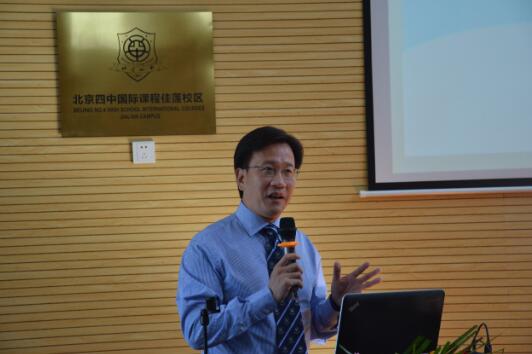 圖為2018年9月份北京四中馬景林校長在北京四中國際課程佳蓮校區(qū)開學(xué)典禮上講話