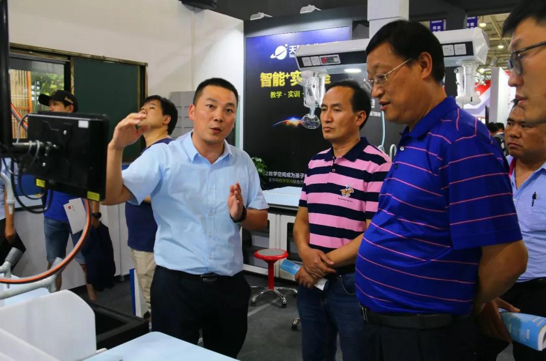 ▲中國教育裝備行業協會副會長兼秘書長夏國明蒞臨天智展廳參觀指導