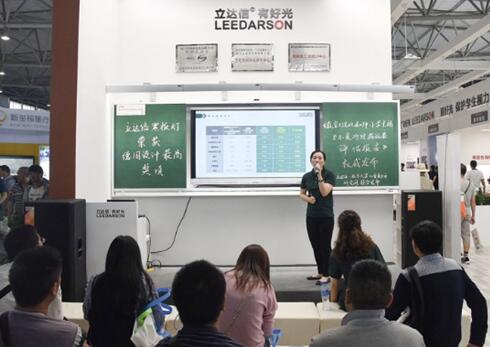 本屆展會立達信展位迎來了我們產品的“使用客戶”——老師和可愛的小朋友們, 在護眼教室里,小朋友們紛紛跟老師表達了很喜歡這樣的教室燈,很漂亮很舒適。老師也對黑板燈能夠均勻照亮黑板,并做到教學不刺眼豎起大拇指。