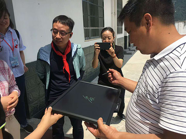 好易寫公益代表向瑤里希望小學(xué)捐贈了一批液晶手寫板、液晶壓感黑板等學(xué)習(xí)設(shè)備,為山區(qū)的孩子們帶去一份份“愛的禮物”,并祝福孩子們六一快樂。