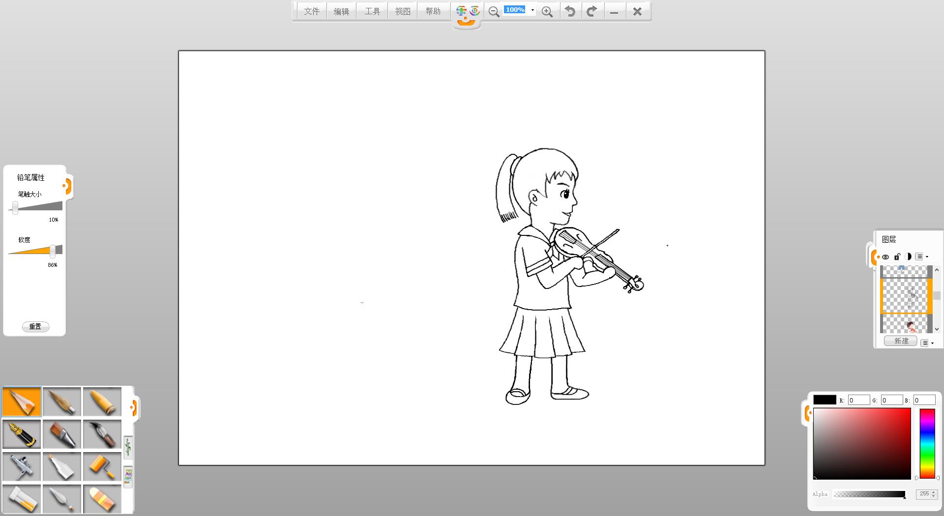 7.使用相同的方法在畫面中間偏右的位置繪制一個拉小提琴的小女孩形象。