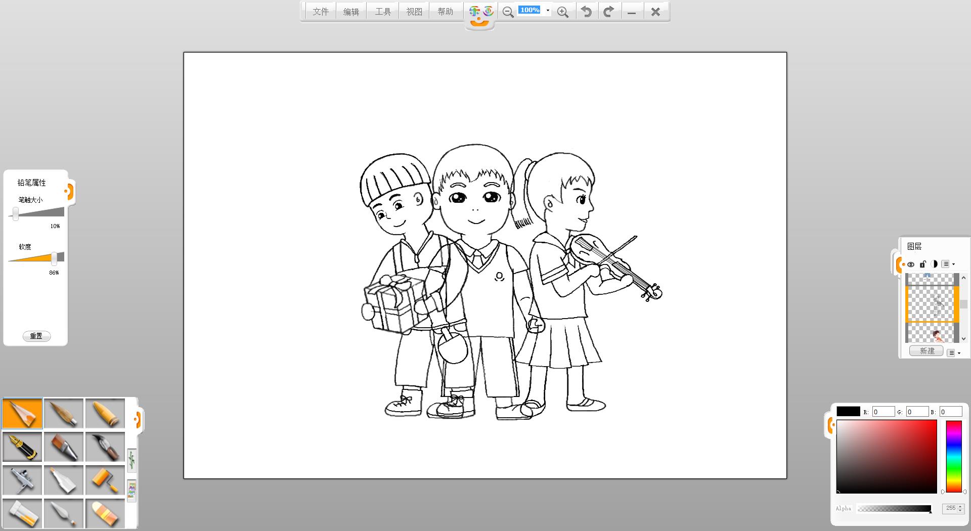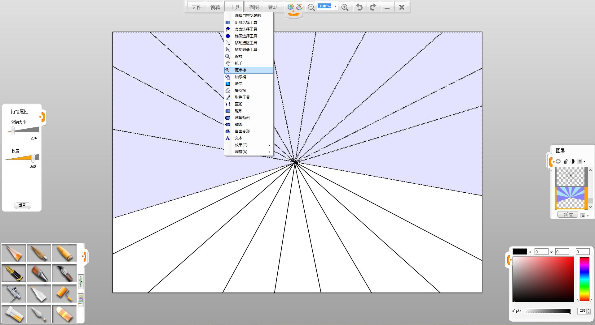 17.使用鉛筆筆觸和工具菜單下的直線工具,繪制一個滑梯。